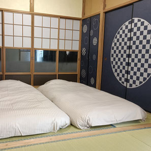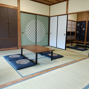 前の和室の窓を開けると長い縁側になっており、縁側に座って南側の山の稜線を眺めながらお寛ぎください。